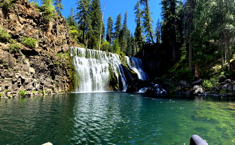 This image captures the breathtaking beauty of an outdoor natural scene. The focal point is a majestic waterfall, its waters cascading down with a mesmerizing force, creating a spectacular spectacle. The waterfall seems to be the lifeblood of this landscape, feeding into a serpentine watercourse that meanders through the scene. The waters are fresh and clear, reflecting the purity of the environment. It's apparent that this body of water plays a vital role in the ecosystem, serving as a crucial water resource. The surrounding area is a lush state park, teeming with life and greenery. A variety of trees and plants thrive in the vicinity, their verdant foliage creating a beautiful contrast with the sparkling water. This park might also encompass a lake, contributing to the rich biodiversity of the area. The image also suggests the presence of a mountain river, its clear, rushing waters adding to the scenic beauty. The overall scene radiates the tranquility and serenity characteristic of a nature reserve, offering a glimpse into the awe-inspiring splendor of nature in its pristine form. The image beautifully encapsulates the spirit of fall, with its calming and soothing vibes. The sight of the cascade, trees, and water is a testament to the unspoiled beauty of the natural world.