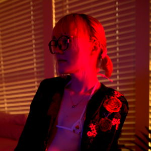 The image displays a person wearing glasses, seated indoors. The individual is donning a red piece of clothing, which is likely to be a shirt or a sweater, that provides a vibrant contrast to the otherwise subdued environment. The glasses they wear are prominent, suggesting a sense of intellectualism or simply a need for vision correction. The interior setting is well-defined. It appears to be a room with a window and window blinds, the slits of which are partially open allowing some light to seep in. The wall in the room provides a neutral backdrop to the whole scene, its plainness broken only by the window. The mood of the image seems to be calm and relaxed, with the person possibly engaged in some quiet, introspective activity. The presence of the window and blinds indicate a private space, perhaps a home or an office. The overall composition of the image indicates a normal, everyday scene, but the person's red clothing adds a dash of bold color to it.