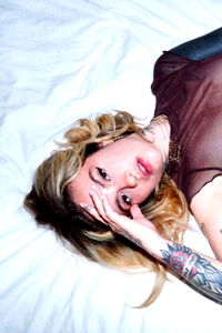 This is a snapshot of a young woman, cheerfully laying on a bed in an indoor setting. The woman possesses distinct features that make her the focal point of the image; her radiant smile, her striking long hair, and her casual yet stylish clothing. The lady appears to be in a state of relaxation, comfortably nestled on the bed. She is in an attire that seems to be suitable for indoors, suggesting a casual day at home. The bed on which she is laying is furnished with bedclothes, which appear to be clean and well-kept, adding a sense of comfort and coziness to the scene. The ambiance of the room is inviting and homely, as indicated by the well-lit surroundings. Her cheerful disposition further adds to the overall warmth of the image. Despite being indoors, her face is well illuminated, which accentuates her features and adds depth to the image. Her long hair is neatly spread out, which enhances her feminine appeal. In the image, the woman seems content and relaxed, which may suggest that she is enjoying her time indoors. Her smile radiates positivity and her relaxed posture on the bed adds to the tranquil atmosphere of the scene. Overall, this photo is a beautiful representation of a relaxed day at home for a young woman.
