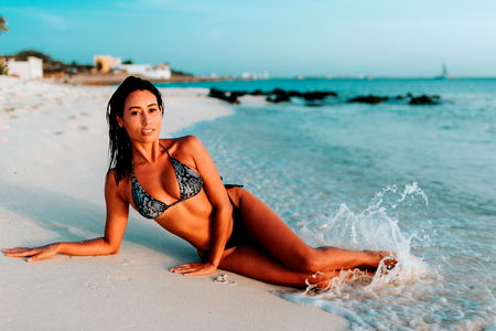 This image captures an elegant female model posing in a well-lit indoor setting. The model, who appears to be in her late 30s, is sitting against a wall, showcasing her fashionable attire and accessories. She is wearing a piece of clothing that emphasizes her toned abdomen and slender waist. Her thighs and knees are exposed, drawing attention to a pair of striking high-heeled sandals that highlight her ankles and elongated limbs. The model's face, which is well defined and carries a confident expression, takes center stage in the photo. Her shoulders are slightly raised, adding an air of sophistication to her pose. The overall atmosphere of the photo shoot seems professional, with a focus on fashion, particularly footwear. The model's fashionable attire and poised demeanor suggest that she is a professional in the industry, familiar with the nuances of posing for such a shoot. The image exudes a sense of style and elegance, reflecting the model's grace and the high-fashion feel of the shoot.