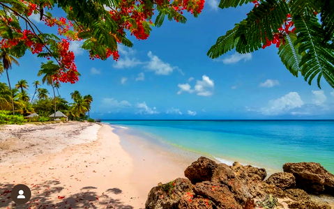 In this picturesque scene, you can witness summer in full bloom in an outdoor setting. It's a fine day with the sky, a canvas of bright blue, lightly dotted with a few wispy clouds. The sun seems to be shining brightly, casting its warm, golden rays on everything beneath. The landscape is predominantly covered by lush greenery, with a variety of trees standing tall and proud, their leaves a vibrant green. The trees appear to be in their prime, providing ample shade and making the environment cool and refreshing. The ground, covered in a carpet of grass and fallen leaves, adds to the natural beauty of the scene. There is also an individual who seems to be enjoying this beautiful day. The person's presence adds a dynamic element to the scene, offering a sense of scale and perspective. In the distance, you can also see a hint of a beach. The sandy stretch seems to be inviting, promising a day of relaxation and fun. Overall, the image captures the essence of a perfect summer day, filled with warmth, greenery, and tranquility.