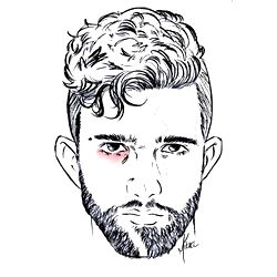 This artwork provides a visually compelling representation of a man's face, depicted in the distinct style of a sketch or line art. The intricate detailing of the illustration is predominately realized through the use of ink, a medium that adds depth and texture to the piece. It appears to be a self-portrait, given the intimacy and personalized nature of the drawing. The man seems to be in his 30s, with a striking jawline that adds a sense of strength and determination to his facial features. His face fills the majority of the frame, creating a sense of closeness and immediacy. The artist has managed to capture a raw, almost visceral, sense of emotion, lending a sense of authenticity to the piece. The illustrative technique used, wherein the lines flow effortlessly to create a cohesive image, contributes to the overall artistic value of the piece. Overall, this sketch is a testament to the power of line art in creating evocative, meaningful representations of the human face.
