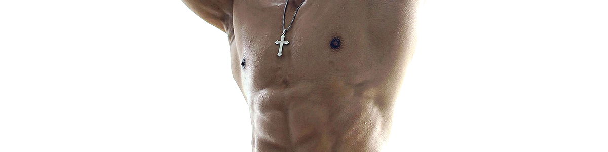 In this picture, a muscular man is captured in the middle of an outdoor setting, most likely a beach considering the sandy surroundings. The man, who is the focus of the image, is standing shirtless, his sculpted chest and stomach muscles on full display. The sun on his skin enhances the definition of his muscles and gives them a slight glow. He is wearing a pair of briefs, which could very possibly be swim briefs, considering the beach setting. The man's elbow and neck are visible, the latter appearing strong and sturdy, matching the rest of his physique. His navel is visible too, placed in the center of his well-toned abdomen. The man appears to be wearing an undergarment, possibly his swim briefs, in a color that contrasts with his tanned skin. The overall image exudes a sense of strength, fitness and outdoor fun, perfect for a hot, sunny day at the beach.