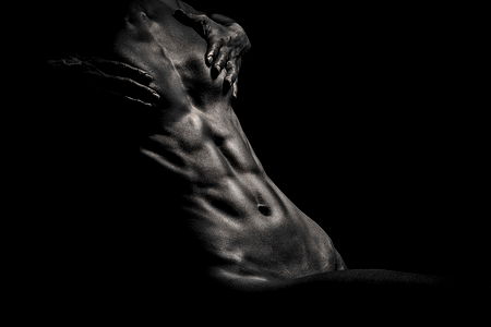This is an artful and captivating black and white portrait of a model. The monochrome palette evokes a timeless elegance, while the high contrast highlights the model's striking features. The model's face is the central focus of the photograph, expertly framed to accentuate her ethereal beauty. Shadows dance across her face, creating a dramatic interplay of light and dark that adds depth and intrigue to the image. The model's expression is enigmatic, her eyes seemingly lost in thought, adding an element of mystery to the portrait. The photograph carries an undertone of erotic literature and nude photography, suggesting the potential narrative behind the image. The model appears to be in the midst of a professional photo shoot, posing with an ease that speaks to her experience in front of the camera. This portrait is more than a simple photograph of a woman, it's a masterful blend of art and photographic technique, a testament to the power of black and white photography to capture and convey human emotion.