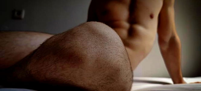 This image captures a male individual showcasing his exceptionally toned physique indoors. The man appears to be a bodybuilder, as evidenced by the definition and musculature of his chest, stomach, and overall body. His powerful chest muscles are robust and prominent, hinting at intense strength training. His stomach also displays a well-defined set of abs, reflecting a disciplined fitness routine and diet. The photograph is a study of the human form in its most raw and natural state. The man is bare-chested, adding an element of nudity to the photo. It seems to be a form of nude photography, though tastefully done to emphasize the aesthetic beauty of the human form rather than to incite inappropriate responses. There is a strong emphasis on the flesh, the texture of the skin, and the play of light and shadow on the body's contours. The individual is not wearing a shirt, which allows for a full view of his upper body. The setting is indoors, creating an intimate and personal ambiance.