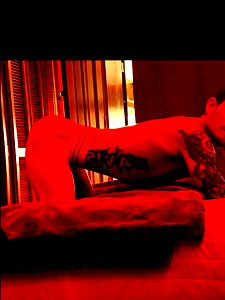 The image focuses on a well-built man who is shirtless, revealing a muscular chest and stomach. His skin is smooth and somewhat tanned, showcasing the rippling muscles of his abdomen and broad chest. He is wearing what appears to be a minimalist style of undergarment; perhaps briefs or underpants, fitting snugly against his lower body. The man's physique is further accentuated by a noticeable tattoo that stretches across a portion of his skin. The intricate design adds a touch of personal character to his otherwise dominant appearance. He is turning slightly, allowing a view of his strong back and broad shoulders. His arms, with defined muscles, hang at his sides. His elbow and limb are positioned naturally, hinting at a relaxed posture. The hint of his navel and the curve of his hip add depth to the image, making it seem more three-dimensional. The setting appears to be indoors, possibly a personal space like a bedroom or a studio. The focus on the man's torso and the intimate atmosphere of his surroundings add a sense of vulnerability to the otherwise robust display of strength and masculinity. The image is a study in contrasts and a celebration of the human form.