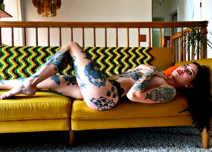 The image captures a person in an intimate indoor setting. They are partially undressed, revealing a significant amount of flesh. The focus of the image seems to be on the person's hip and thigh area, although the abdomen, back, stomach, limbs, joints, and chest are also clearly visible. The person appears to be in a relaxed or possibly posed posture, which accentuates the curves of their figure. The lighting in the room casts soft shadows, highlighting the individual's natural body form. Intriguingly, the person's skin is adorned with a tattoo. The tattoo's design is intricate and seems to be a form of personal expression. The person is also wearing an undergarment, which adds an element of modesty to the otherwise revealing image. The person is likely a young adult, possibly a girl, based on their physique. The image offers a candid glimpse into a moment of vulnerability or self-expression. It can be interpreted as a celebration of body positivity, personal freedom, or individual aesthetics. The overall ambiance of the image is one of tranquility and introspection.
