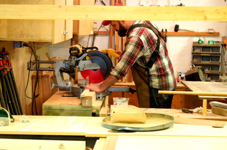 This image captures a scene set indoors, within a workshop that is brimming with the rustic charm of woodworking. In the heart of the image, an artisan is diligently engaged in his craft, surrounded by an array of tools that are essential in his line of work. The workbench, the focal point of the room, is clearly well-used, bearing the marks of countless previous projects. The workshop itself is a symphony of wood, with wooden elements evident in the construction of both the workbench and the tools. The room is a testament to the artisan's craft, a testimony to numerous hours spent creating and shaping. The prevalence of wood in the scene suggests that the artisan specialises in woodworking, making items that are both functional and aesthetically pleasing. Although the person's face is not clearly visible, their posture and the way they are engrossed in their work conveys a sense of dedication and passion for their craft. The image overall paints a vivid picture of traditional craftsmanship, of a person finding joy in creation, and of the beauty that lies in raw, natural materials like wood.