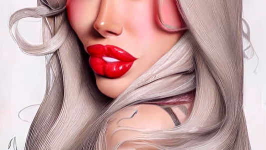 This is a stylish, artistic depiction of a young woman's face, appearing to be around 23 years of age. Her visage exudes a sense of high fashion, with her makeup meticulously applied in a manner reminiscent of a professional makeover. The use of cosmetics is prominent; her eyes are adorned with thick, elongated eyeliner and her lashes seem to be coated with mascara, adding a striking depth to her gaze. Her eyelids are brushed with a layer of eye shadow, enhancing the overall allure of her eyes. The woman's lips, coated with a smooth layer of lipstick and possibly glossed over for an added sheen, are also a significant part of this imagery. The artist's choice of presenting this portrait in a sketch-like style adds an appealing contrast to the otherwise glamorous theme. The hints of fashion illustration techniques in the artwork further amplify its chic vibe. This image is indeed a beautiful intersection of art and fashion, portraying the elegance of a woman enhanced by the artistic application of cosmetics.