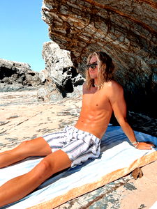 This image captures an indoor scene featuring a youthful male model. He is showcasing his athletic physique, highlighting his defined muscle tone, particularly in his abdomen and thighs. His face, expressing a certain intensity, is highlighted in the upper part of the frame. The model is clothed in minimal swimwear or undergarments, possibly briefs or swim briefs, which are suggestive of lingerie or underwear styles. The clothing is form-fitting, accentuating his muscular build and drawing attention to his navel area. The setting is minimalist, with a plain wall in the background. Natural light seems to be pouring in from a window out of the frame, casting a soft glow on the model and his surroundings. The lighting adds depth and texture to the model's muscles, creating a dramatic effect. Overall, the image exudes a sense of raw yet elegant masculinity. The model's strong, elegant pose and the simplicity of the surroundings combine to create an image that is both visually striking and subtly provocative.