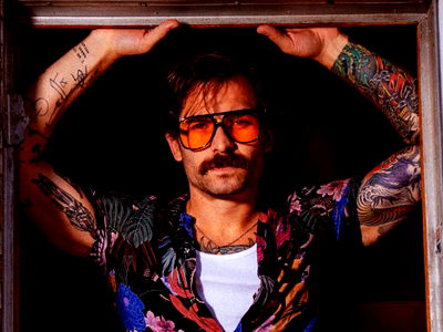 This image captures a striking portrayal of a bearded man against a backdrop of the sky and clouds. The man, who appears to be in his late twenties, has a prominent face that fills the majority of the frame. His eyes are slightly shaded, accentuated by thick eyebrows that add intensity to his overall expression. His facial features are further defined by a strong jawline, which is accentuated by a well-groomed beard and moustache, lending him a charismatic appeal. The facial hair is thick and well-maintained, enhancing his mature appearance. The man's face is the central focus of the image, and it radiates a sense of character and depth. The background is a vast expanse of sky, filled with clouds, adding a layer of natural beauty to the image. This juxtaposition between the human face and the ethereal sky creates a powerful contrast and adds an element of intrigue to the image. The overall composition is compelling, creating a captivating portrait of this man set against the infinite expanse of the sky.